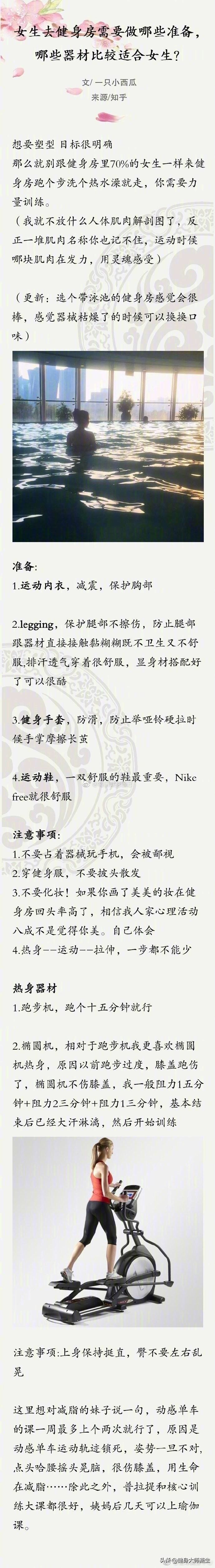 > 女生去健身房需要做哪些准备,哪些器材比较适合女生?(:知乎)